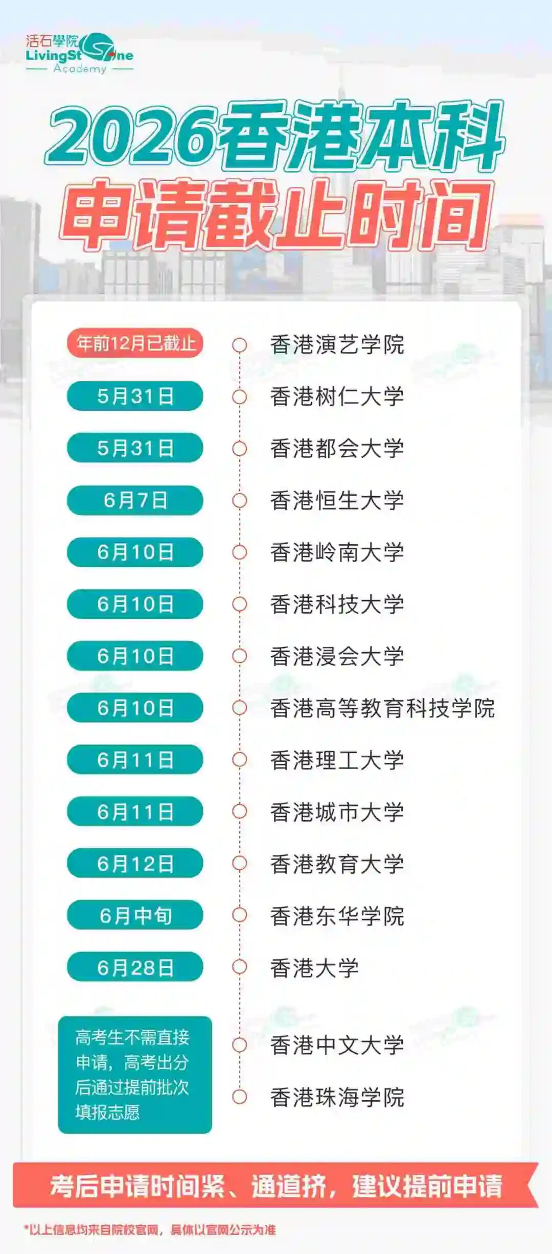 - 2025香港16所大学本科(高考生)申请时间及要求汇总!