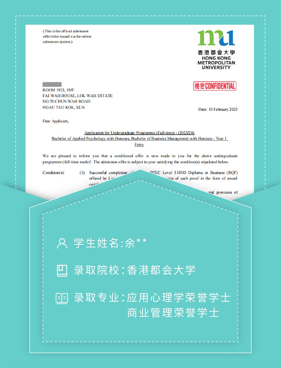 超过130多个国家及过千所大学认可,并以香港及海外预科班成绩+雅思成绩作为入学条件。